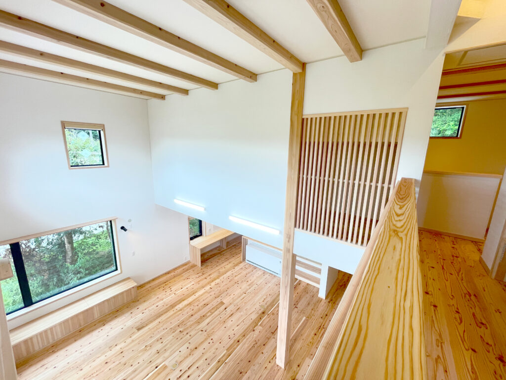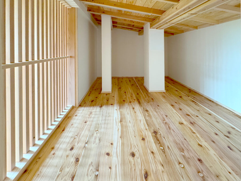 2階には格子で小さな蔵をつくり荷物をしまうだけでなく、籠った空間で本を読みたいという奥様のかわいらしい希望を叶える事ができました。