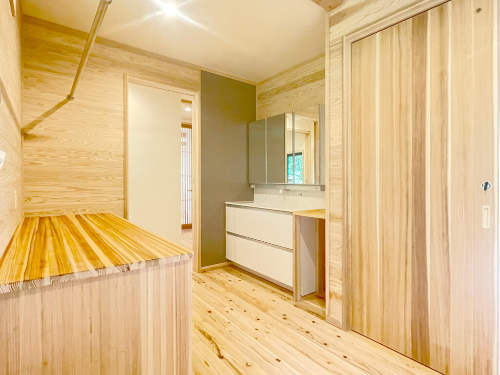 洗面台や物干しスペースもご主人様のアイデア満載。マグネットで取付できるマグネットウォールを採用しました。