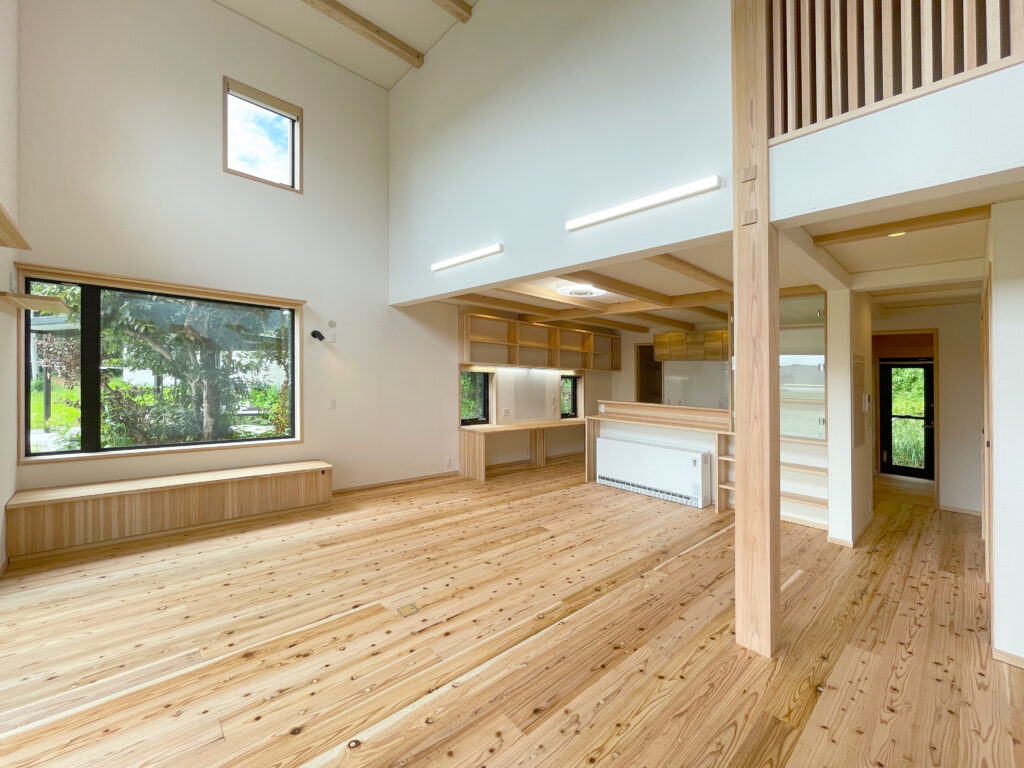 夏は涼しく、冬は暖かく。家自体の性能はもちろんの事、広大な自然を感じながら暮らせるよう間取りなどを工夫しました。室内からこんな開放的な景色が見れるというのは本当に羨ましいですね。